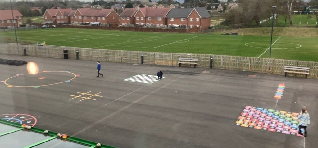 Shrivenham Primary School “Following our very successful bid to the Rotary Club and their generous grant, the children of Year 6 then spent the summer term raising money. They sold ice pops and held a whole day fundraising event and managed to add a further £1300.  We were fortunate to receive a further donation of £250 from our local Co-Op, so were able to chose our markings…….The children are loving using the markings and everyone agrees they have made a huge difference to playtimes.”